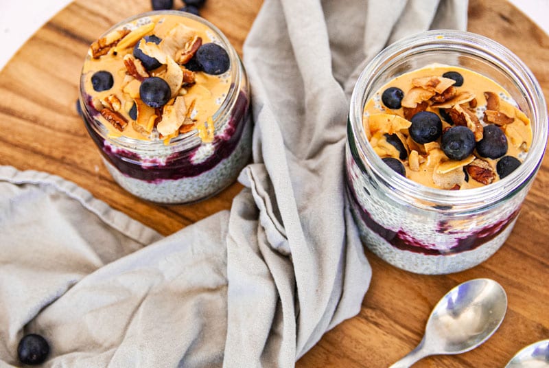 Honestly this overnight chia pudding with blueberry compote gives grab and go a healthy makeover.