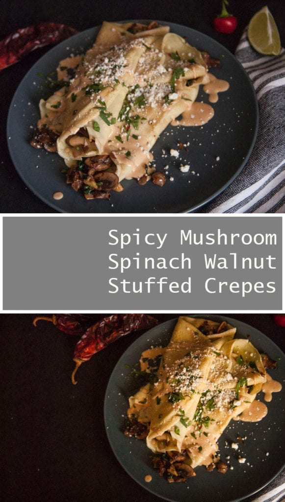 Spicy Mushroom Spinach Walnut Stuffed Crepes