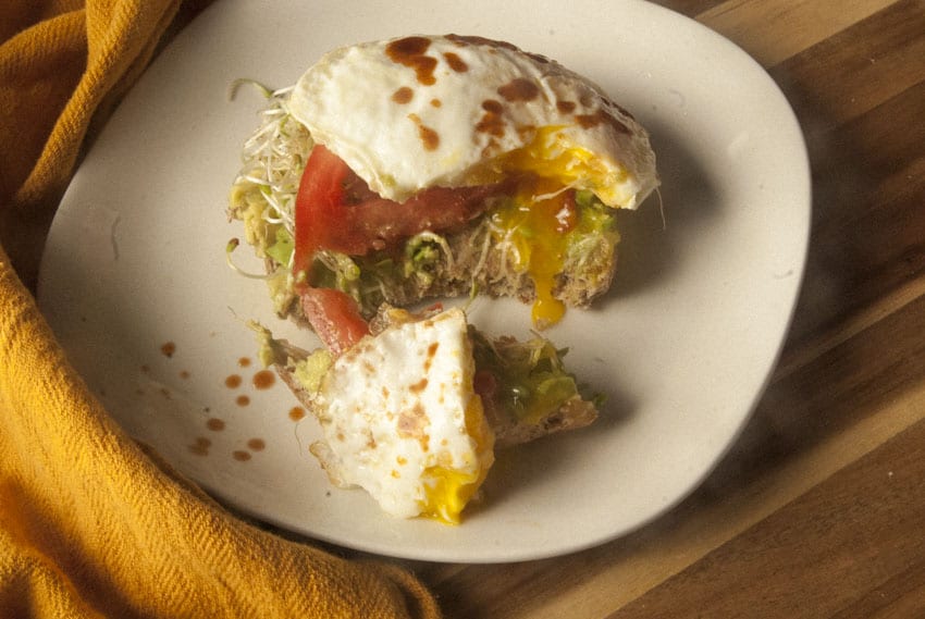 After all that excitement, I had 20 minutes to make my breakfast before I had to leave for work. My obvious solution, my 3-4 times a week usual breakfast. This easy breakfast sandwich will make you feel all sorts of happiness after you dig your fork into your egg yolk allowing it to ooze in all it’s eggy glory. Life hack: your bread is the perfect delicious mop. You are welcome. As you can see by the picture below, I love hot sauce on my egg, try it out.
