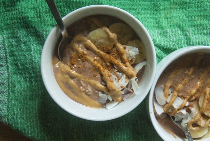 I added Cacao powder to the easy overnight oats. Cacao powder is essentially chocolate before it’s been processed. Cacao powder is packed with antioxidants, a plant source of Iron, and a natural mood enhancer.