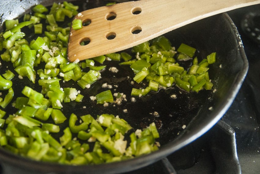 Once it was seared, I used the same pan to cook my hatch chiles and garlic. The drippings from the meat end up flavoring the veggies, and it was awesome.
