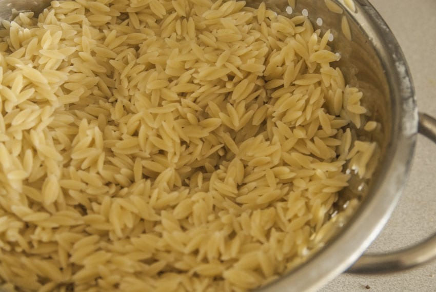 Cook orzo according to pasta package instructions