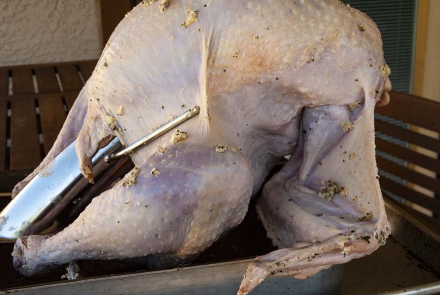 If you are using a turkey cannon, add cup orange juice, 2 sprigs of chopped rosemary, and 1 tbsp of honey to liquid reservoir