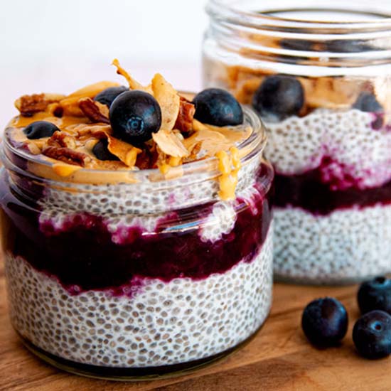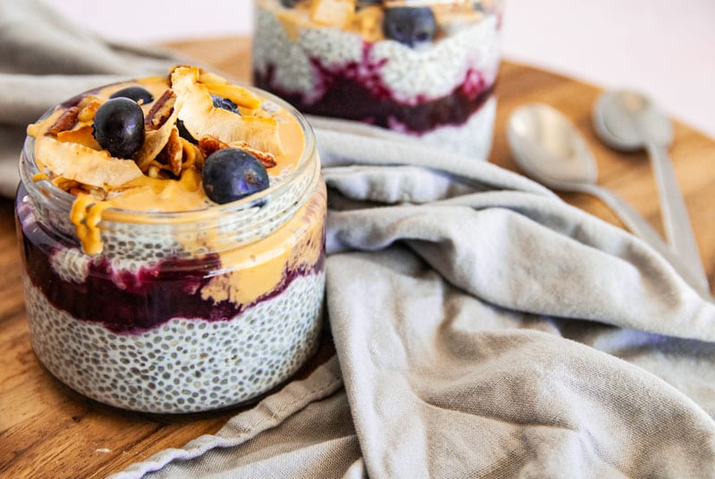 Honestly this overnight chia pudding with blueberry compote gives grab and go a healthy makeover.