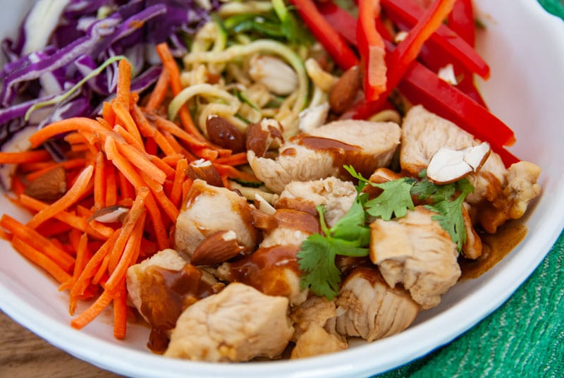 Thai Chicken Zoodle Salad with Spicy Almond Sauce