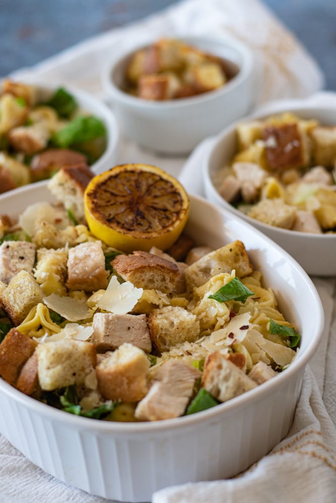 Before we talk about this Caesar Tortellini Salad, let’s rewind back to a time of college days. Lots of late nights out…. and lots of drunk ordering food. While most peoples drunk late night munchies were pizza, taco bell, nachos… I’m sure the list can go on. Mine happened to be a Classic Caesar Salad. That’s right, if I remember correctly, my typical order was from some random pizza joint in Tempe and I always ordered a Classic Caesar Salad. So fast-forward to current day. I’m still OBSESSED with Caesar salads and it is one of my go-to’s when I want a delicious meal.