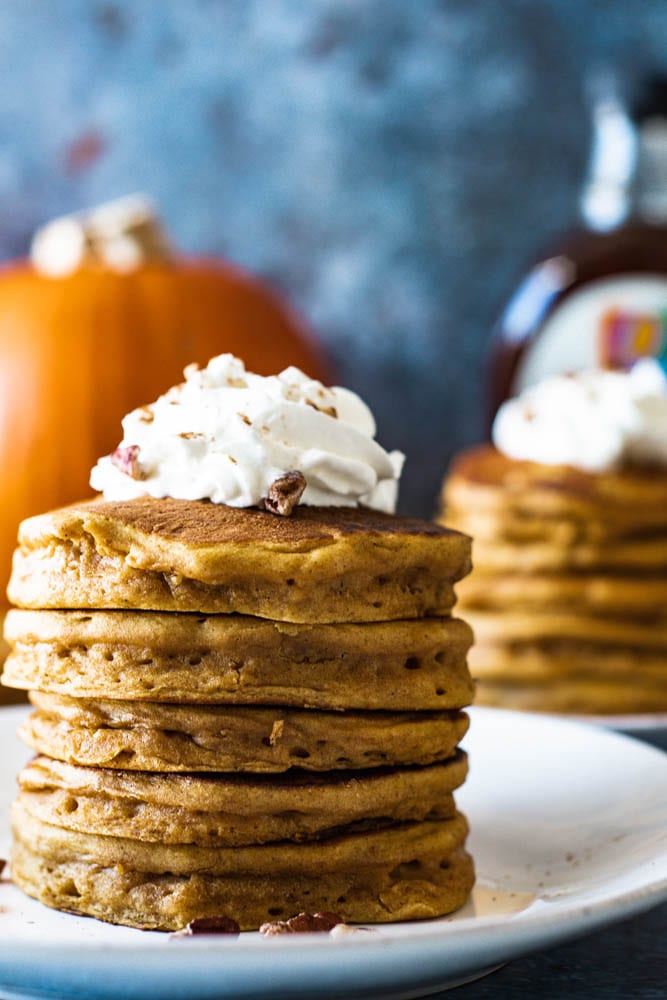 And yes, like the name implies there is some health packed into these whole wheat pumpkin pancakes. Since they are being made out of wheat flour and all. So like I said, if you are jotting down some Thanksgiving breakfast ideas, these are a great option.