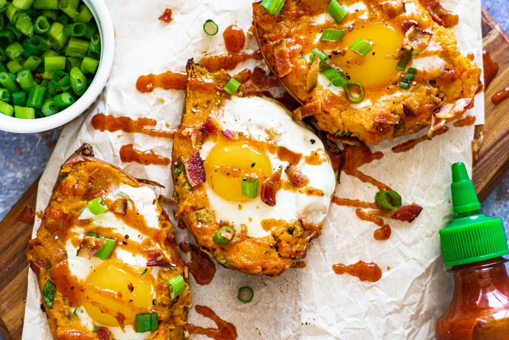 Sriracha Breakfast Twice Baked Sweet Potatoes