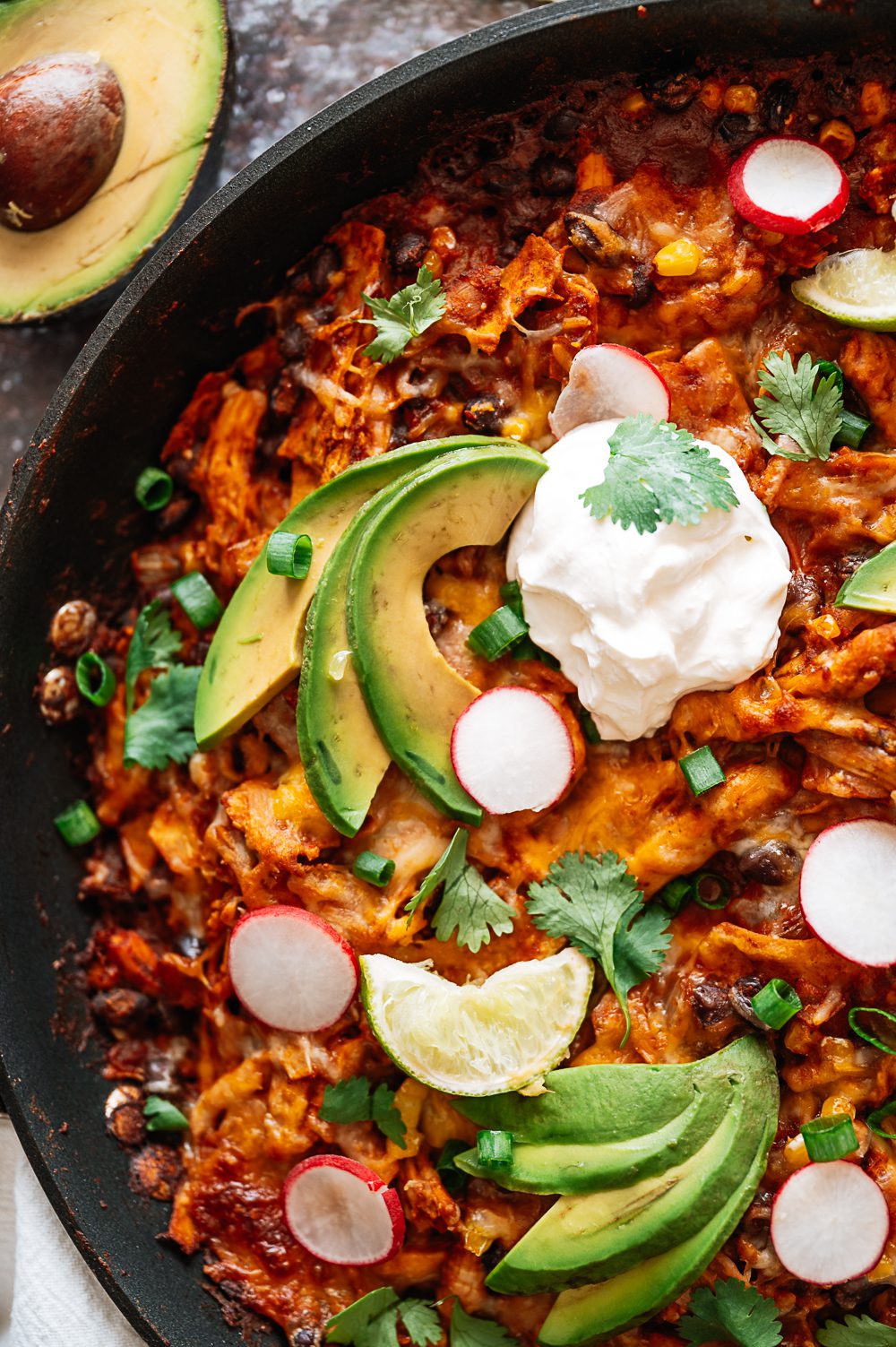 Let me paint a picture for you. It’s Tuesday. You’re in rush hour. You’re hungry. This week has already been exhausting. I have four beautiful words for you: One-Pan Enchilada Casserole.