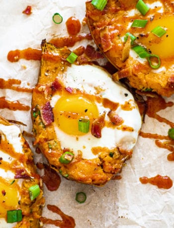 Breakfast Sriracha Twice Baked Sweet Potatoes