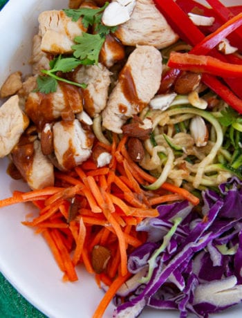 Would you just check out this Thai Chicken Zoodle Salad with Spicy Almond Sauce. So Fresh, So Crunchy, So Everything You Need Now! First let’s talk about zoodles, shall…